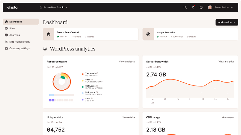킨스타, 매니지WP 대시보드에 접근할 수 있습니다.